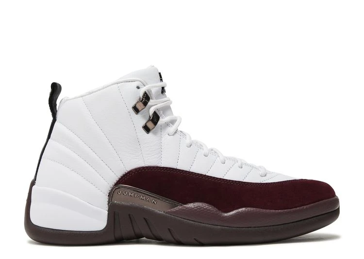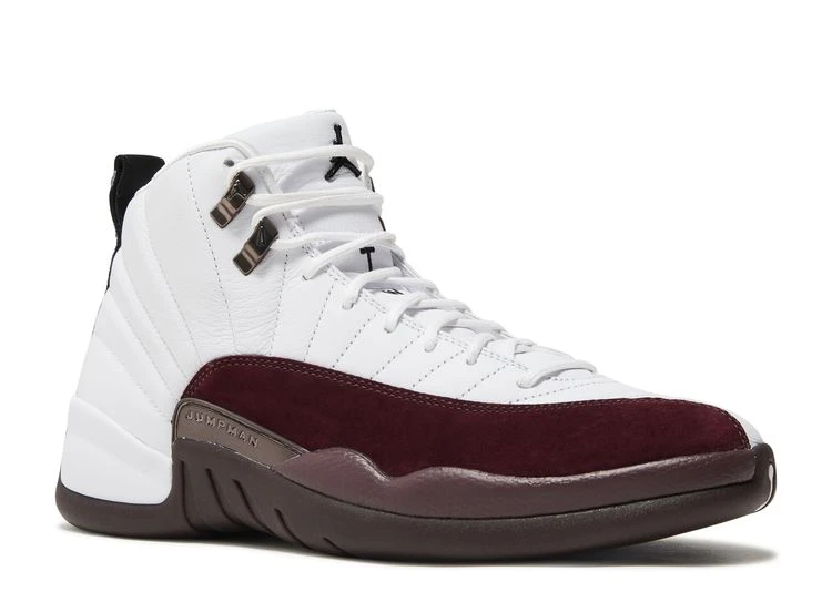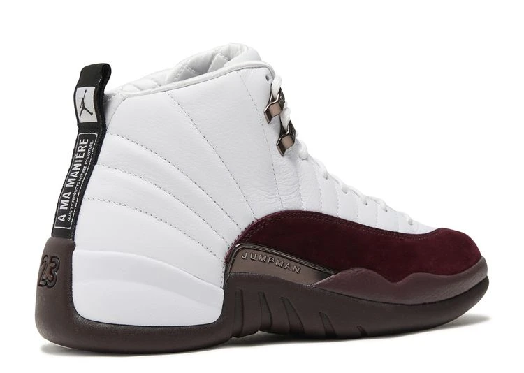 The A Ma Maniére x Wmns Air Jordan 12 Retro SP ‘White’ pairs high-caliber materials with traditional two-tone color blocking. Stitched lines radiate outward on the white leather upper, fortified with midfoot overlays in a contrasting burgundy hue. Quilted textile lines the collar and insole, bringing back a design motif showcased on each of the Atlanta retailer’s previous Jordan collaborations. Mismatched Jordan and A Ma Maniére branding decorates each tongue and heel tab. The mid-top rides on a cushy Phylon midsole, enhanced with a full-length Zoom Air unit and a carbon fiber spring plate.