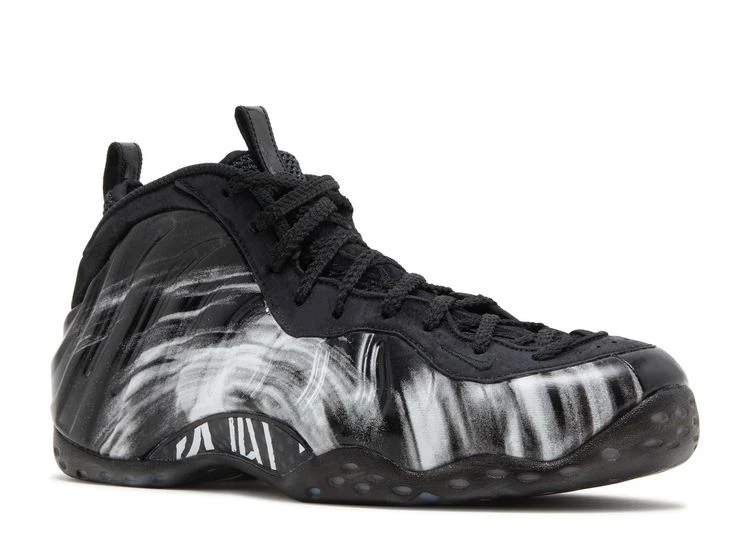 The Nike Air Foamposite One ‘Black’ is taken from the two-piece ‘Dream A World’ pack, featuring neutral colorways inspired by Roman philosopher Seneca. White brushstroke designs embellish the contrasting black upper, constructed from molded polyurethane with tonal suede construction throughout the collar and eyestay. Penny Hardaway’s 1 Cent logo is embroidered on the back heel, while custom insoles display a Seneca quote: ‘Luck/Success Happens When Preparation Meets Opportunity.’ Performance benefits full-length Zoom Air cushioning, a carbon fiber shank and a herringbone rubber outsole.
